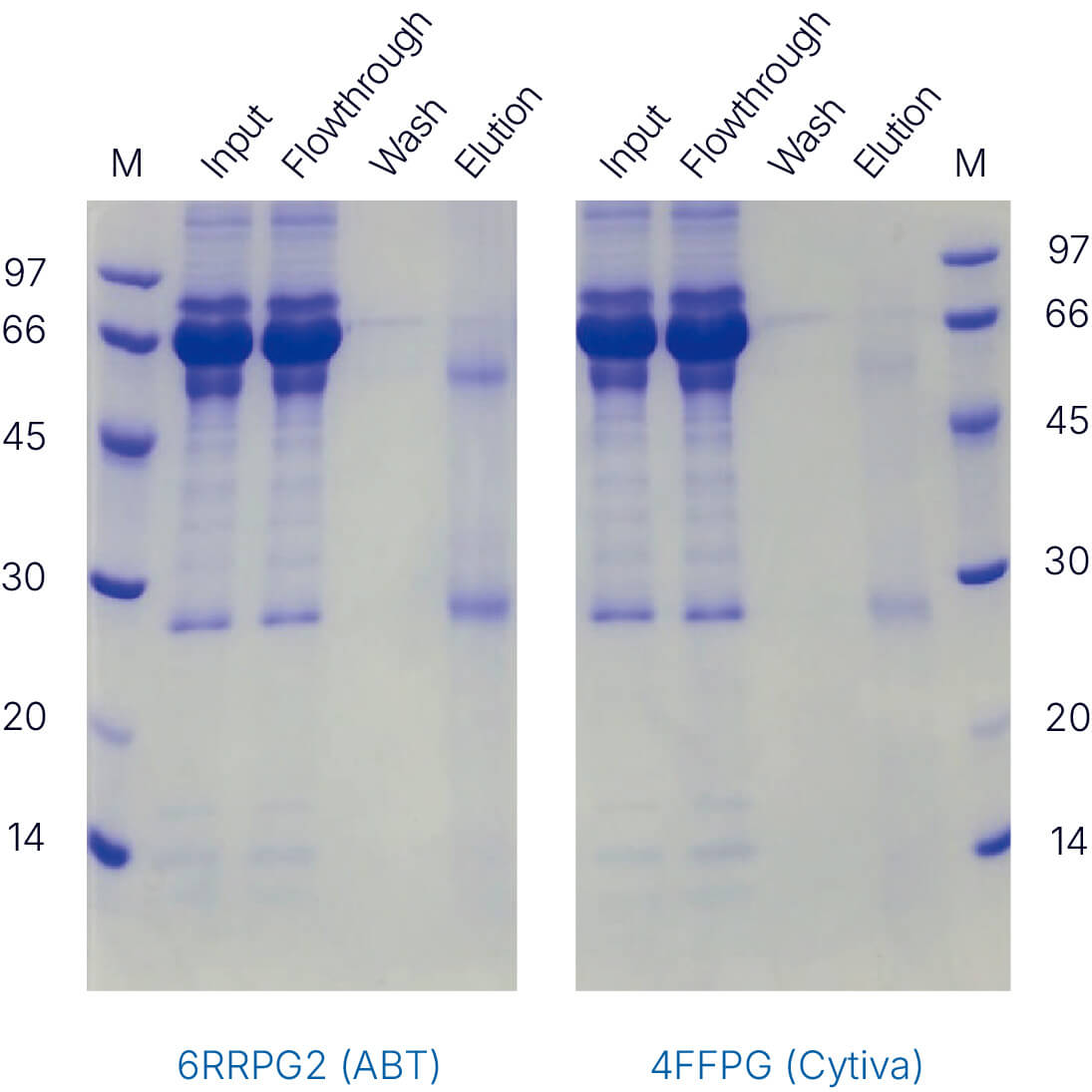 2. The corresponding purification step fractions of the 6RRPG2 resin and 4FFPG resin are shown in an