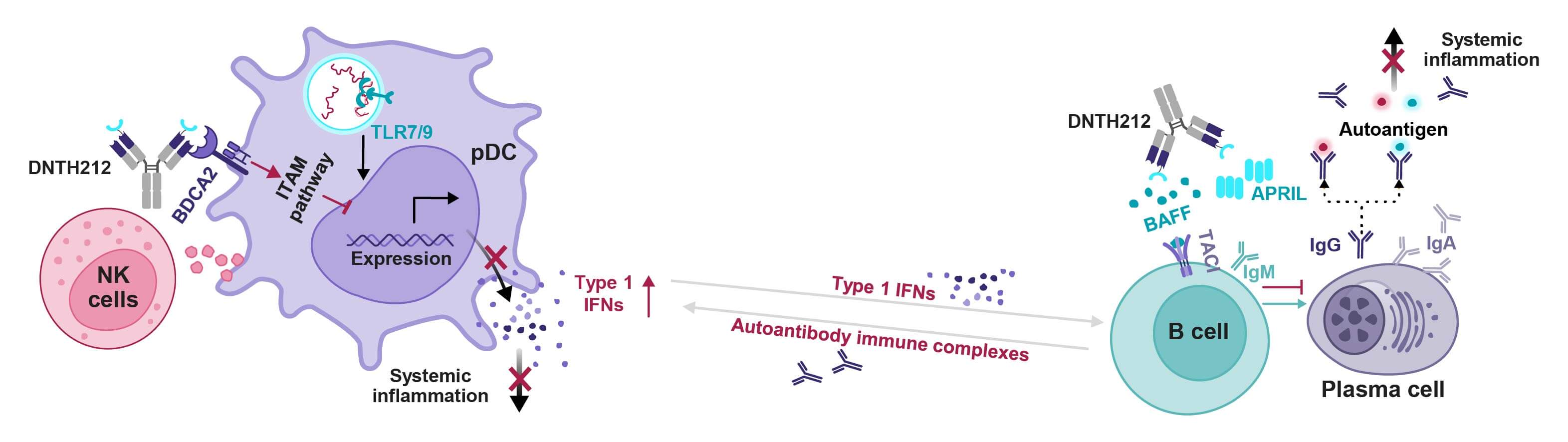 - 抑制 pDC 的 BDCA2:阻斷 Type 1