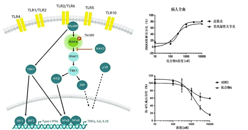IRAK4 降解劑:阻斷IL-1/TLR訊號,抑制IL-6。